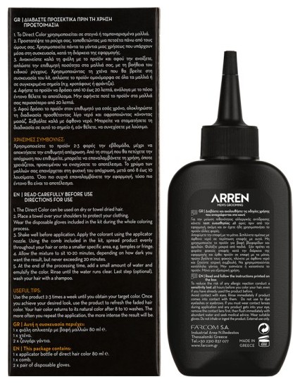 Arren Mens Grooming Direct Hair Color Kit Black - Μαύρη Βαφή Μαλλιών 80ml