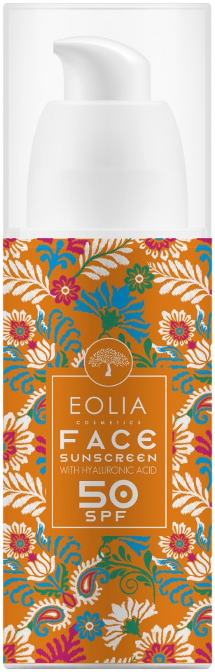 Eolia Cosmetics Face Sunscreen 50SPF - Αντηλιακή Προσώπου με Βιταμίνη Ε και Υαλουρονικό Οξύ 50ml