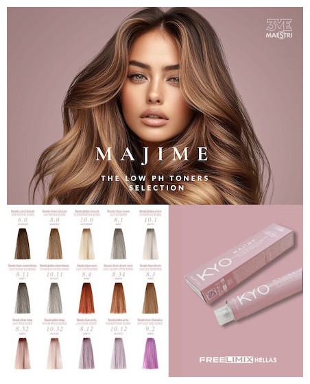 Η Majime είναι μια ημιμόνιμη βαφή χαμηλού pH εμπλουτισμένο με Activeplex, ένα σύμπλεγμα αναδιάρθρωσης με βάση την ινουλίνη, το γλυκολικό οξύ και τα πεπτίδια. Το γλυκολικό οξύ, χάρη στο όξινο pH του, σφραγίζει τα λέπια της τρίχας, προωθώντας την ενυδάτωση και διατηρώντας την ακεραιότητα των ινών της τρίχας.
